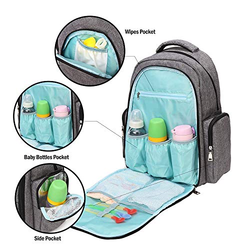 Baby Wickelrucksack Wickeltasche mit Wickelunterlage Multifunktional Große Kapazität Babytasche Reisetasche für Unterwegs, Grau